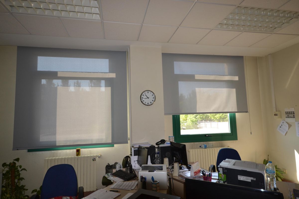 Instalación de estores enrollables y cortinas opacas para cubrir diferentes necesidades de gestión de sol y luz en diversas dependecias de esta Facultad de Valladolid.